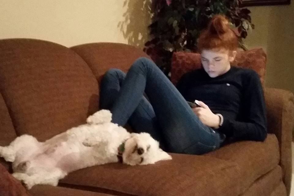 Then came Spanky. Spanky is a white version of Rusty. Rusty was red. I think Rusty was a Cockapoo. Spanky is a Multapoo… or something like that. I just know he has poo in him somewhere.
