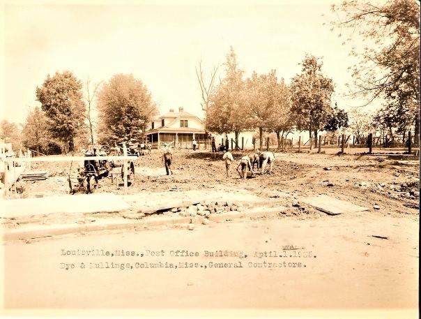 Here are a few shots from the past. These are pictures taken during the construction of the post office on the corner of Main and North Columbus during the 1930s. In one shot you can see the old Jessie Mitchell home that was located where the rear parking lot is now located. In another you can see the Masonic lodge and the face of a gas station that was butted up to McCully's Grocery Store. These pictures were previously shared a while back by my friend, Darlene Bane.