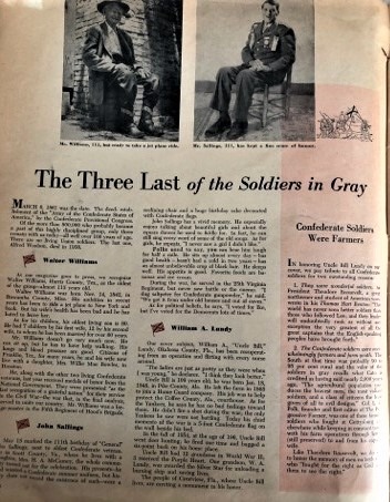 Asbestos? It was everywhere, from floor tiles to exterior siding. Can’t get a date? Try brushing your teeth. Do you need barb-wire strong enough to lift a cow? It’s in there, too. Though I’m not sure PETA would approve. Got the runs and afraid you might miss out on a date? There’s a bottle for that. And there is even a page where three Confederate veterans were interviewed. On a good day a couple were still able to sit up for a while. It appears men over 100 still have an eye for the ladies. – Even if they have trouble sitting up. One said his favorite meal was bananas and ice-cream. I wonder if he still had teeth.
