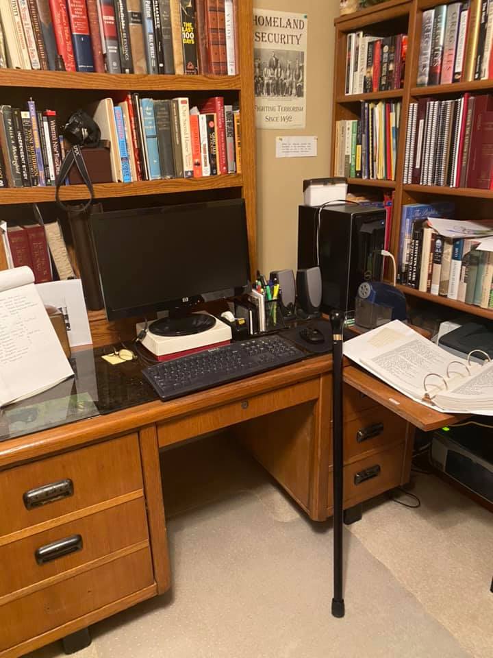 Then it hit me. Why not a hollow walking cane? I went online and found several nice ones. Finally I settled on a black beech cane that had a long glass flask and a couple tumblers inside. Perfect. It arrived today and that’s what made the thump on my porch.