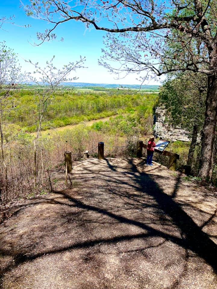 Twelve thousand years ago glaciers carved out the canyon and kept sliding westward, slowly melting into the Mississippi River. At one spot we were able to look down at The Big Muddy below as it flowed toward Missouri in the distance.