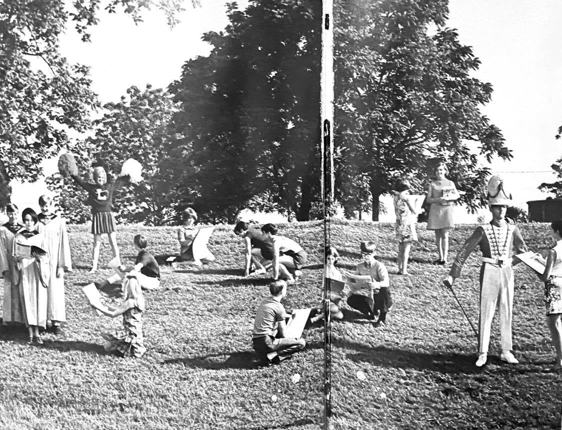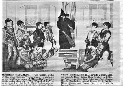 Some months after sitting up with my friend’s father my grandmother’s sister passed away at the ripe old age of 96 and I was asked to be a pallbearer for the first time. I began to wonder if people were beginning to associate me with the dead or dying. Aunt Sallie’s funeral was held at Flower Ridge, a rural church, south of town on a very wet, stormy day. While sitting on the front row with the other pallbearers we could hear the thunder and rain pounding outside. It was a bad day for a funeral. But is there really ever a good one? Just as the service ended, the rain let up. We carried her down the front steps, across the parking lot and into the fenced-in graveyard on the south side of the church. It looked as if the bottom was about to fall out again at any moment when the funeral director decided it best to take a shortcut to the awaiting canopy on the opposite side of the graveyard. In doing so he led us directly over a new grave. As soon as my foot hit the plot I began to sink. One leg had disappeared to below my knee and everyone had stop while I pulled myself up. SCAPUCK! There was a giant sucking sound as the grave gave up my muddy leg and shoeless foot. Again, there was a pause while I rolled up my sleeve, reached down and groped around down there for my shoe. With a muddy leg, shoe and matching arm we continued on our way, marching ever onward to the gravesite pretending nothing had ever happened. Again in my senior year there was another cute girl that was brave enough to go out with me. We became steadies. I really liked her and fell in love with her family. After we had dated several weeks one of her girlfriends cornered me in the hall and wanted to know what was wrong. Was I ever going to kiss her goodnight? I was at a loss for words, so I said, “I’m working up to it.” I panicked. I didn’t know how to kiss a girl. Not that I didn’t want to, I did. I really, really did, but I had no clue how to go about it. What a loser I was. I was a senior and had never been kissed. My father had drilled it into my head to treat all girls like ladies, or like my mother. But I would never date my mother! Something was terribly off with his logic. Over and over in my head I ran all the different scenarios. What to do, how to go about it, when to do it. I didn’t want to kiss her goodnight on her front porch. Her porch light was always on and her neighbors across the street were members of my church. What if they saw me? What would they think? Would they tell my folks? The car. It had to be done it the car. I was afraid if I didn’t kiss her, she would break up with me and I didn’t want that. So there it was. If she wanted to kiss, I’d have to kiss her in the car. On our next night out we were riding around and the whole time I was trying to figure out how and when to go about it. Suddenly I saw headlights behind me. Dang. I figured some of my buddies were following us, so I tried to lose-’em. A quick turn here, a near stop there. Another turn, then I sped up and turned onto Ivy Avenue. I just couldn’t get whoever it was off my tail, so I turned into the school’s driveway. It was a huge horseshoe shaped boulevard and I knew after I made the loop I would be able to look across and see whoever it was that was me. It was a police car. After turning off the radio I could hear the siren. Then I noticed the lights behind the grill of his car. I hadn’t noticed them before because he’d been tailing me so close. I pulled over. My window was down by the time he walked up. He took one look at us trembling in the front seat. “Boy, what in the world are you doing? “I have you speeding, failing to come to a stop before turning right on red. Not stopping at a four way stop, evading an officer…I could go on and on. What were you thinking?” I knew I was going to jail. “Sir, you’re probably not going to believe this, but I thought you were a buddy of mine tailing us while we were riding around on our date. “I’m ashamed to say I was trying to lose you. Sorry.” “Sorry? You’re sorry?” “Yes, sir. I really am.” “Boy, I could throw the book at you!” After standing there looking at us for a moment he shook his head and said, “Just go on and get outa’ here. “And don’t break any more laws or I WILL throw the book a’cha.” After riding around a bit longer I pulled over on and obscure road, turned off the car and faced her. Look out world, here I am. My mind was racing when she asked, “Why’d you stop the car? What are we doing way out here?” I was at a loss for words. Evidently she wasn’t a mind reader like my mother. Mother knew every evil little thought I had. Was kissing evil? “Ummm… I thought… ummm. “Hmmm. I don’t know.” Suddenly I wasn’t feeling so well. I started the car and took her home. It was weeks before I had the nerve to ask her out again. Her friends were asking me what was going on and I had no answers for them. We were officially not steadies any longer. The summer before my senior year when Armstrong stepped foot on the moon there had been a mass gathering on a farm outside Woodstock, New York. It was the birth of a counterculture and hippie era where over 30 of the most prominent musicians of the day gathered on a farm for several days of concerts, love-ins and who knows what else. Woodstock soon became a household name, but in our sheltered corner of the world it took a while before we heard about it. We were still focused on the moon landing and other things that went up in the air. Like The Wizard of Oz. That was our senior play. We had a great cast and a wealth of talent in our graduating class. My cousin, Cathy Bennett, played the part of Dorothy and did a fantastic job. I ended up with a small roll. A very small roll. I was mayor of Munchkin Land. I had one line, “Follow the Yellow Brick Road.” I know it was a lot to remember, but someone had to do it. Looking back there were many great takeaways f