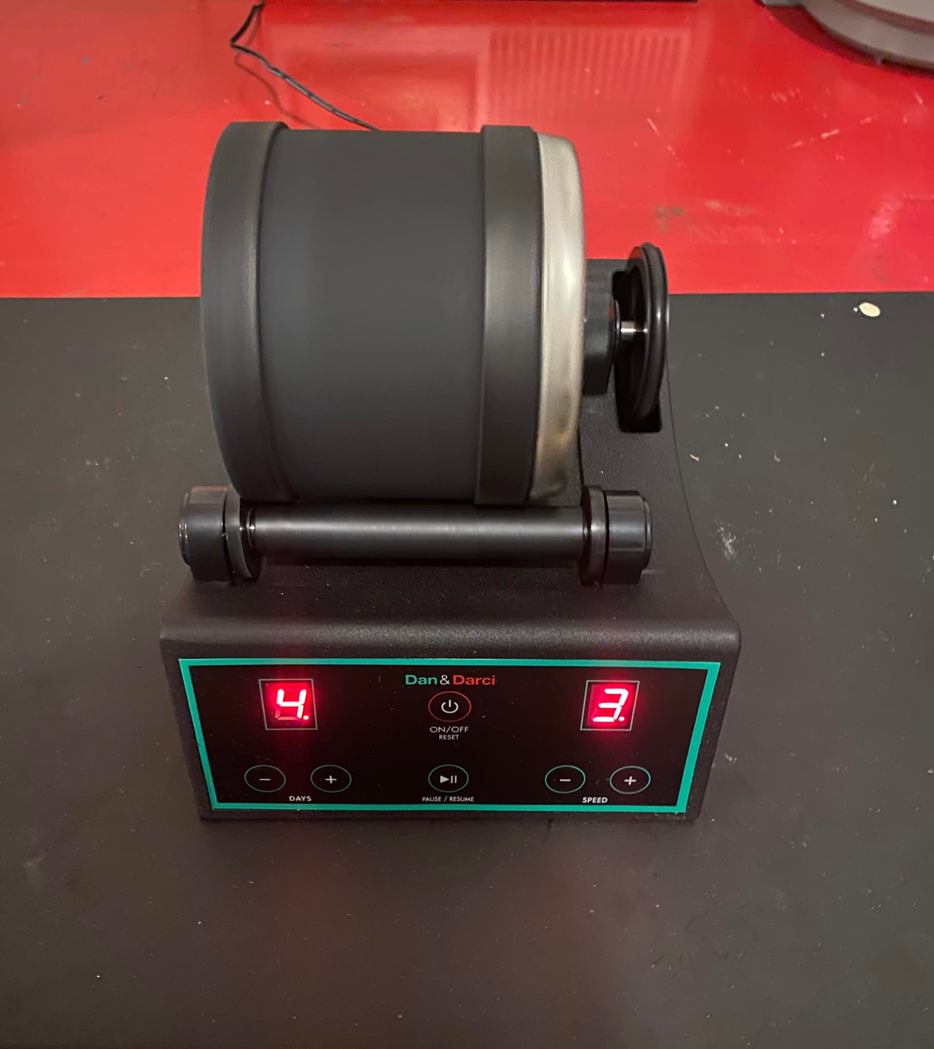 Next I placed the drum on a stand and enter the number of days I wanted it to rotate, along with the speed I want it to turn. The first step requires five days of the drum rotating on level three.